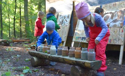 Jeder Tag ein Abenteuer, hinter Baumstumpf und Felsbrocken immer Neues entdecken, jubelnd in die Laubhaufen springen, oder sich an Kletterbäumen ausprobieren. Waldkindergartenkinder haben genügend Platz für Bewegung und Phantasie. Sie finden alle Spielsachen von denen sie träumen: Mondrakete, Forschungsschiff, Zwergenhaus oder Restaurant - all das und vieles mehr verbirgt sich in der alten Baumwurzel, dem umgestürzten Baum, in Blätter, Sand und Lehm. Und obwohl wir selber Nichts besitzen, bietet uns der Wald, Gottes Schöpfung, alles, was wir benötigen, im Überfluss. Eine unbezahlbare Erfahrung für Groß und Klein.
